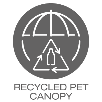 Das Schirmdach besteht aus recyceltem PET mit einer umweltfreundlichen, PFC-freien wasser- und schmutzabweisenden Beschichtung von ecorepel®. ecorepel® imitiert die natürlichen wasserabweisenden Eigenschaften von Entenfedern und gewährleistet damit, dass Textilien trocken und sauber bleiben.